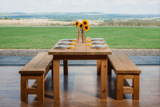Elevate your dining experience with our stylish rustic dining tables and benches. Crafted for both elegance and functionality, our collection offers options for various tastes.